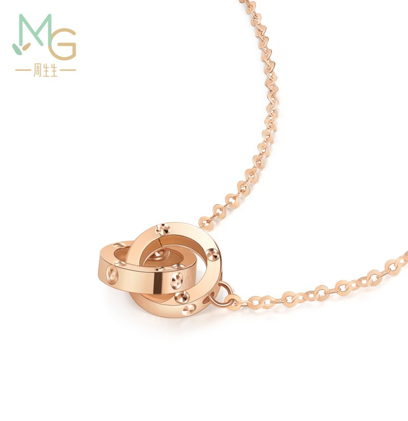 商品名称:周生生薄荷系列环环相扣圆珠双环18K金项链女