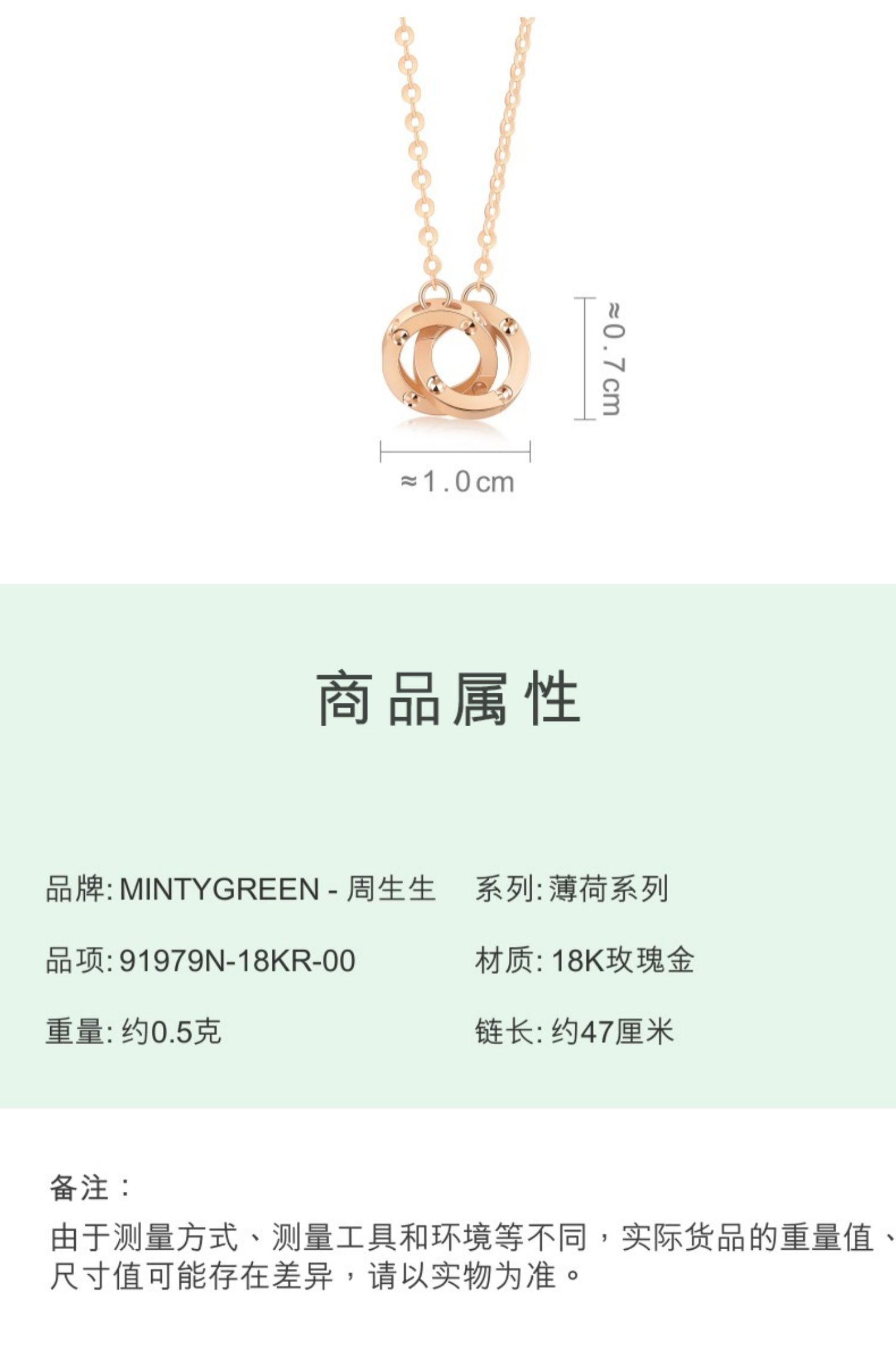周生生薄荷系列小绿裙玫瑰金18K金项链银杏叶套链